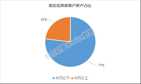 2016年,证券市场仍以中小投资者为主。调查显示,77%的受访投资者证券账户资产量在50万元以下;新入市的投资者中,超过9成投资者的证券账户资产量低于50万元。