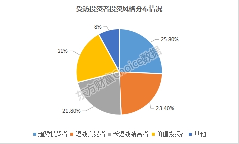 长期价值投资者占受访投资者比例约两成,追涨型投资者占四成。相比2015年,投机性较强的短线交易投资者和追涨型投资者比例有所下降,投资者投资风格更趋于理性。
