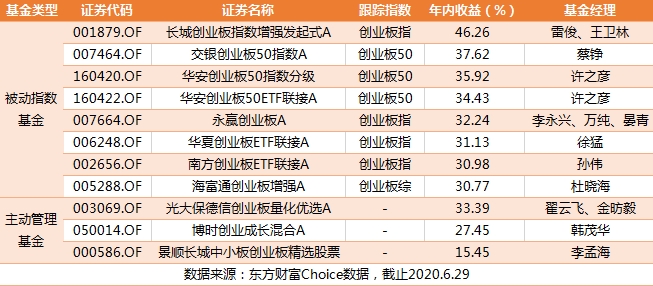 华安创业板50ETF、交银创业板50指数A、华安创业板50、国投瑞银瑞泽中证创业成长、华安创业板50ETF联接A的收益率在35%至40%之间。