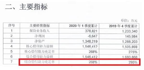 从经营数据来看,民生人寿的保险业务发展不力。在保险业务收入方面,2019年累计实现收入123.33亿元,2020年一季度为37.88亿元,分别占到人身险公司同期保费总收入(29628亿元和13094亿元,据银保监会官网)的4.16‰和2.89‰,其占比呈萎缩态势。与此同时,公司的综合偿付能力充足率较2019年年底下降了27个百分点。