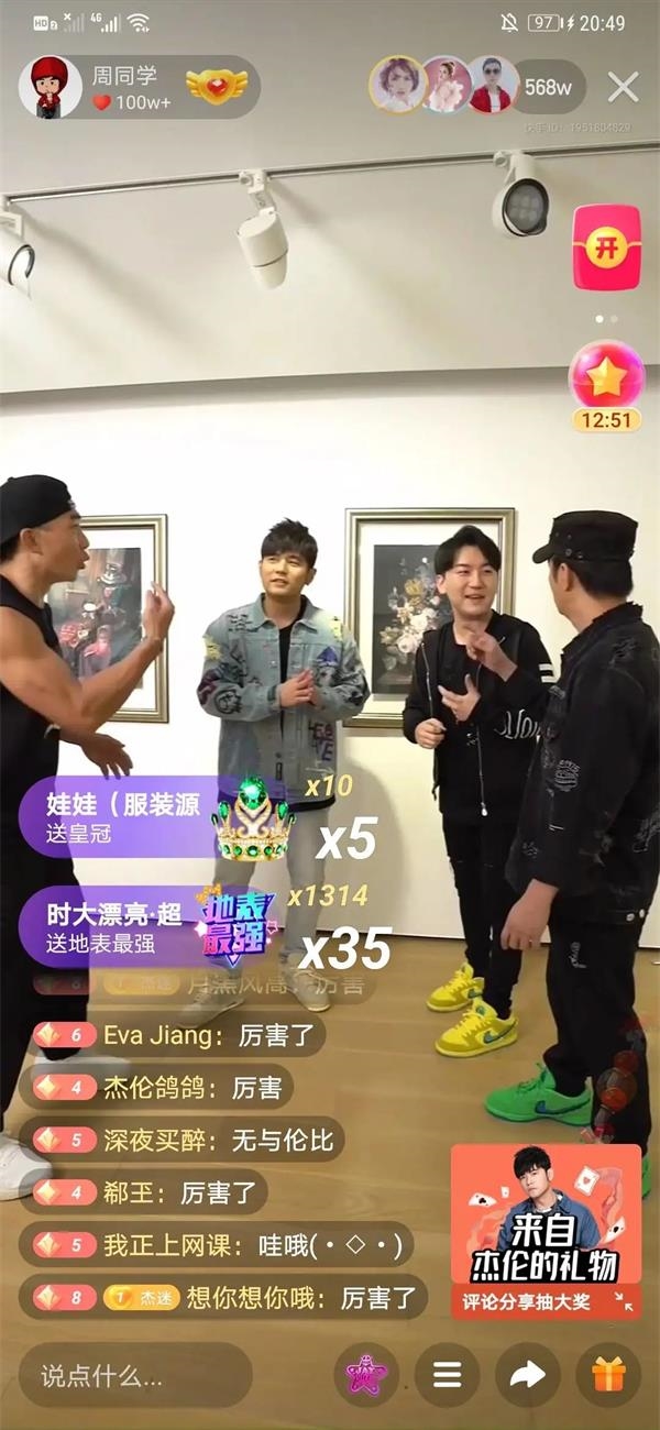 粉丝弹幕刷不停,都是夸赞的话,看得第一次开直播的周董都不好意思了……