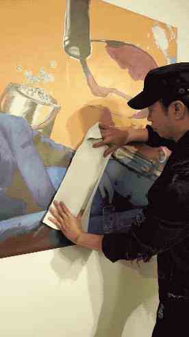 而陈冠霖则用丝巾罩住画上的香槟,一转手香槟突然出现在了他的手中。