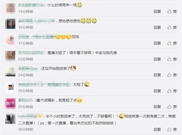 总体看来,周杰伦的直播首秀还是有点小紧张,而且粉丝明显没看够,已经疯狂期待第二次了。