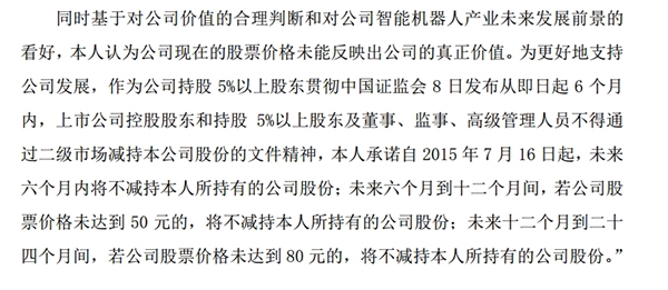 也就是说,在2016年7月16日至2017年7月16日之间,如果公司股价达不到80元,姚国际承诺不减持所持有的公司股份。