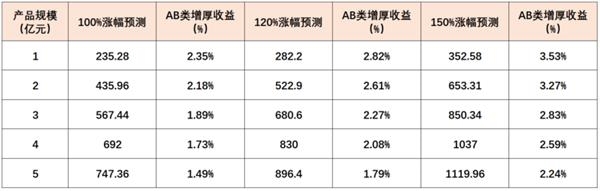 从AB类来看,取600亿发行规模,AB类4000个账户和85%的入围率、120%的涨幅,按全部入围算,预计下半年创业板AB类账户单账户打满将有830万元收益,对应4亿的账户规模(可打满的假设规模)下的增厚受益率为2.08%。