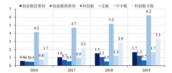 首批科创板企业2019年平均归母净利润为3.32亿元,剔除掉中国通号后的平均规模仅1.87亿元,整体而言,创业板盈利规模较其他板块有一定优势。