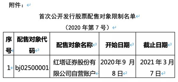 9月7日中国证券业协会披露最新IPO配售对象限制名单。据了解,红塔证券自营账户在科创板“赛科希德”新股发行项目网下申购过程中,存在违反《科创板首次公开发行股票网下投资者管理细则》第十五条、十六条规定的情形。