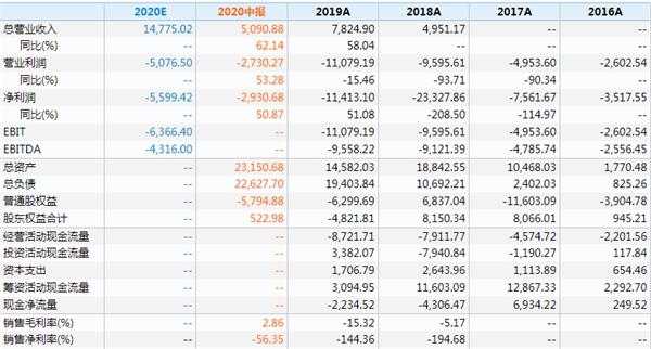 图3:蔚来汽车的过去数年财务摘要。