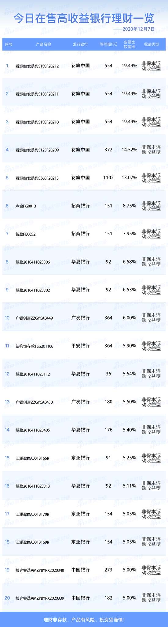 12月7日在售高收益银行理财产品