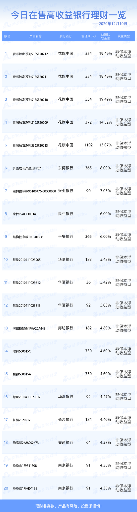 12月10日在售高收益银行理财产品