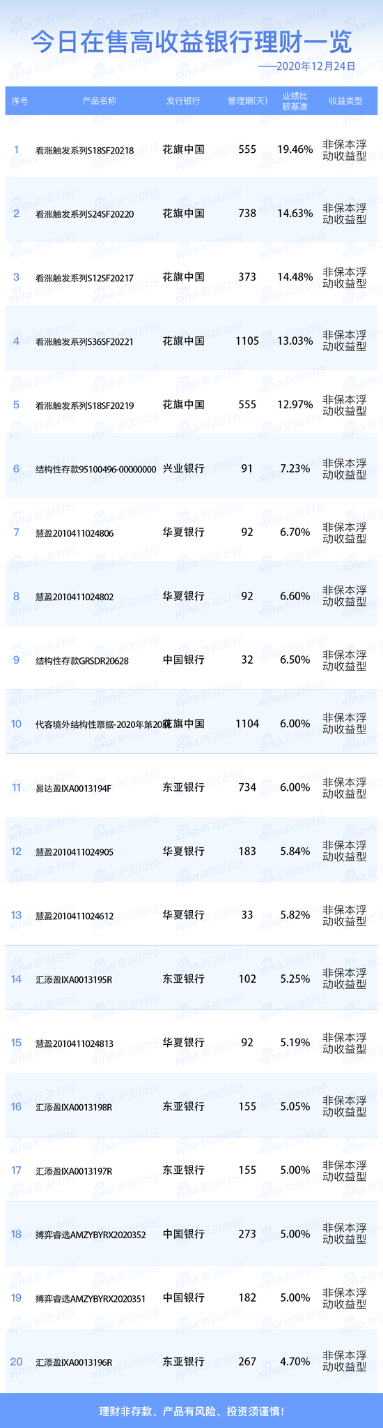 12月24日在售高收益银行理财产品