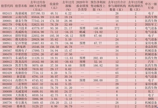 表:去年12月份获超5000万元以上大单资金布局的机构调研股