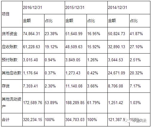 先总体来看,2015年,华大的流动资产从12.14亿增长到30.47亿,翻了了2.5倍。2016年稍许有些增长。主要是因为2015年华大进行了一次大规模的融资,和玉高林等一批地主老财砸了不少银子进来,但是我们看它2015年的货币资金,并没有什么增长,钱去哪儿呢?