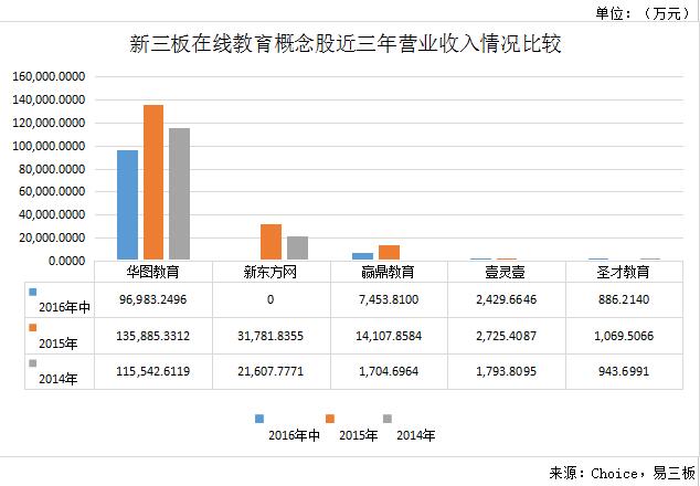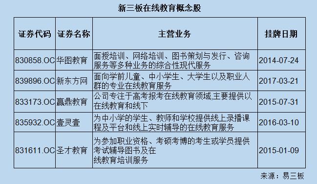 据易三板了解,新东方网并不是新三板上第一家挂牌的在线教育机构。在此之前,已经有赢鼎教育、华图教育、壹灵壹、圣才教育等机构挂牌。从主营业务来看,各家机构差异较大。赢鼎教育主要专注于高考报考在线教育;圣才教育致力于职考、考硕考博的在线教育;壹灵壹主要提供中小学的录播课程;华图教育则精耕国考市场。相比较而言,新东方网的服务范围相对较广。