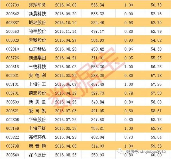数据宝筛选出上市时间在4-12个月之间、最新价低于60元、总股本低于1.5亿股、流通市值低于15亿元的股票,合计共有34只。