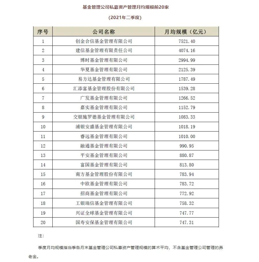 中基协发布2021年二季度各项资管业务月均规模数据!