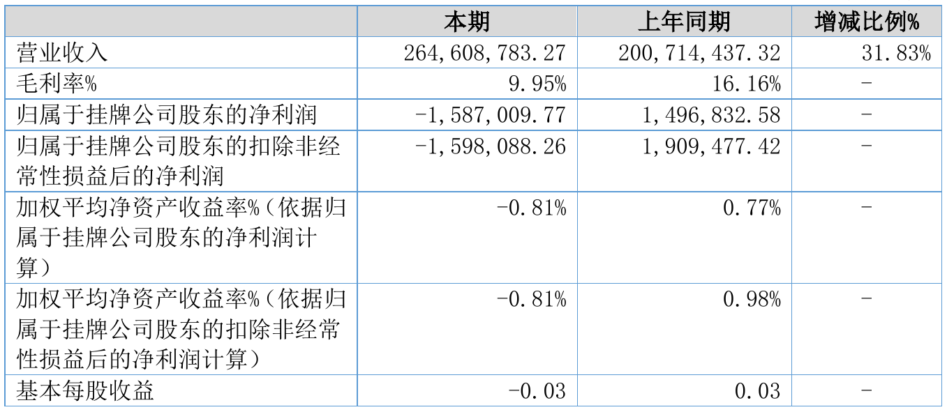 挖贝网8月25日,康达新能(833282)近日发布2021年半年度报告,报告期内营业收入264,608,783.27元,同比增加31.83%;亏损1,587,009.77元,同比由盈转亏。