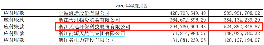 购销数据存在巨大差异,直接导致两家的应收应付往来款数据也存在差异。天地环保在招股书中披露,浙能电力一直都是该公司的应收账款第一大客户,2019年和2020年的余额分别为46635.66万元和26458.56万元;而浙能电力在年报中认可的应付账款余额则始终高于天地环保认定的应收账款金额。
