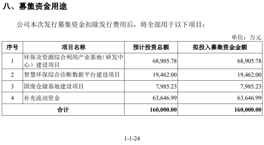 另据招股书披露,天地环保本次上市计划募集资金16亿元,其中有6.36亿元将被用于补充流动资金,而募投项目之一的“固废仓储基地建设项目”预计投资总额仅为7985.23万元。