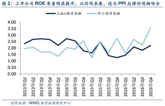 第二,更重要的是企业盈利。用上证ROE从侧面来反映企业投资回报率,我们可以发现,从2015年四季度开始,供给侧改革在淘汰落后产能的同时,提高了投资回报率。上证和中小板的ROE均出现明显回升,这与PPI走势几乎一致。