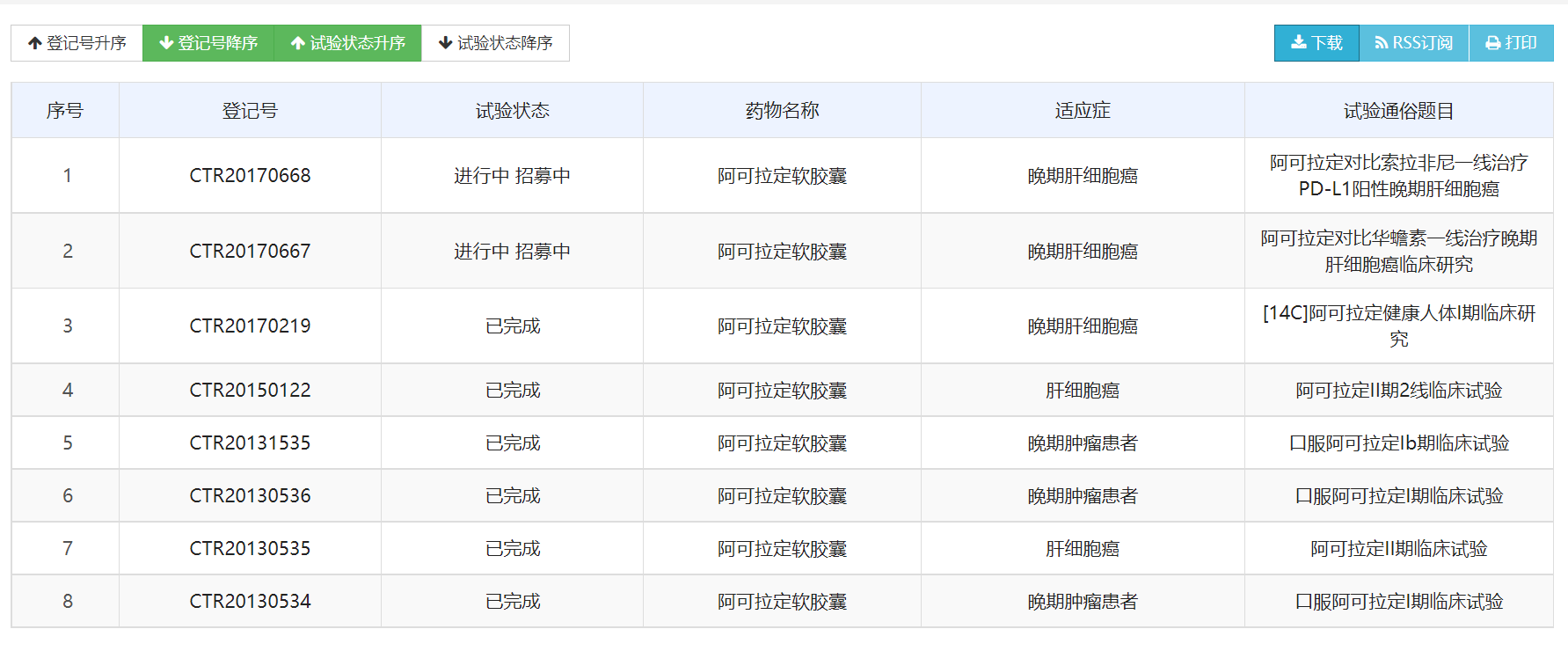 第一财经记者查阅药物临床试验登记与信息公示平台发现,阿可拉定对比索拉非尼一线治疗PD-L1阳性晚期肝细胞癌、对比华蟾素一线治疗晚期肝细胞癌临床研究这两项实验目前仍在进行、招募中。