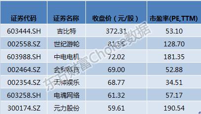 例如创下A股多项记录的次新妖股吉比特发行价仅54元,现在已经涨到372元,成为仅次于贵州茅台的A股第二高价股。世纪游轮、中电电机、天神娱乐、电魂网络等游戏公司股价也都超过50元。