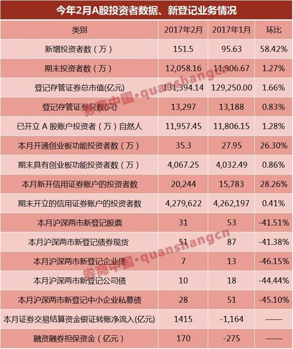 中国结算统计,今年2月份,新开信用证券账户的投资者数量达20244人,较上月增加4461人,环比增长近三成。