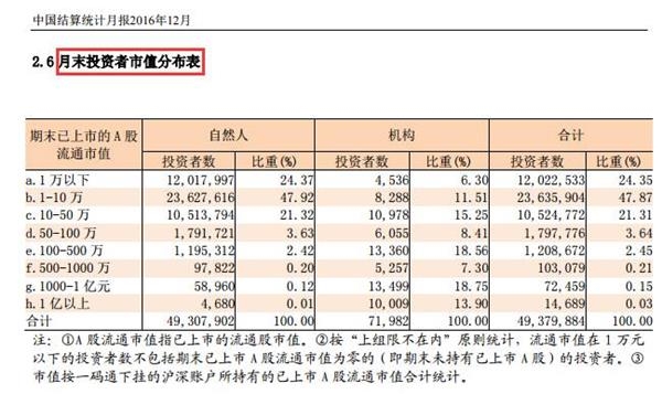 值得一提的是,与去年中国结算发布的投资者月报相比较,今年的统计月报出现明显“瘦身”,六项重要数据“消失无踪”,估计再也无缘与公众见面了。以下是这六项数据(最后一次露脸是在2016年12月月报: