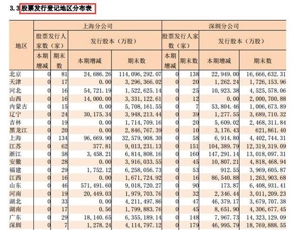 对比发现,最新月报已不再公布“月末投资者市值分布表、最近一年参与二级市场集中交易及期末持仓投资者情况表、特殊机构及产品A股账户变动表、股票发行登记地区分布表、流通股托管市值地区分布、股改限售股份解禁减持情况统计”这六项指标。