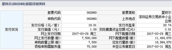 星帅尔3月29日发行申购上限7500股