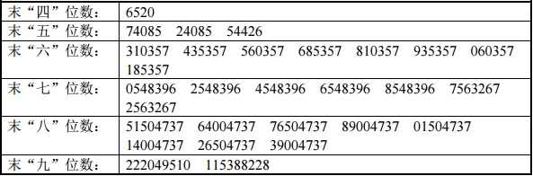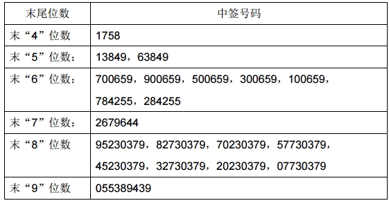凡参与本次网上定价发行的网上投资者持有的申购配号尾数与上述号码相同的,则为中签号码。中签号码共有40000个,每个中签号码只能认购500股深圳市广和通无线股份有限公司股票。
