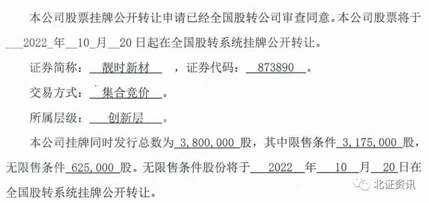 10月20日,靓时新材正式挂牌新三板同时进入创新层。至此,10月以来6家公司挂牌新三板,与此同时,7家公司已获得全国股转公司同意挂牌的函。