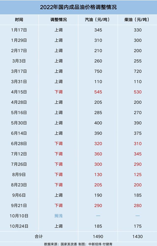 中新经纬梳理,今年以来,国内成品油价格已经进行了20轮调整,呈现“十二涨七跌一搁浅”格局,汽油价格累计上调1490元/吨,柴油价格累计上调1430元/吨。