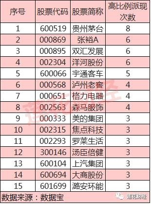 表二:2000年以来高比例现金分红股票次数排行