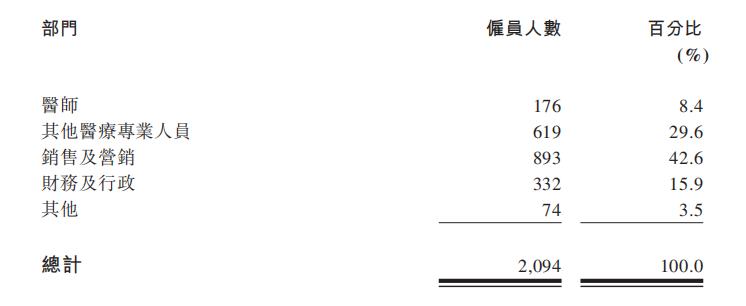销售部门的员工人数,甚至比医生及其他医疗专业人员的总和还多出近百人。