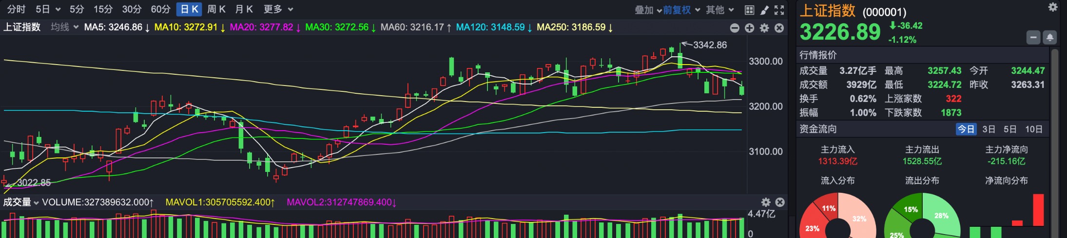 再说A股行情,昨天好不容易反弹一天,今天又跌了回去,而且是各类股指全线走弱。