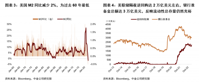 叠加其他全球主要央行同步收紧货币,金融体系中的流动性正被快速抽离:美国1月M2同比增速首次降至-2%,为过去60年以来最低。虽然流动性总存量仍然充裕,但分布并不均匀,存在结构性短缺。