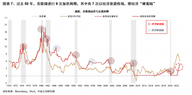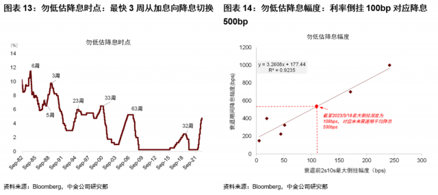 金融风险事件快速扭转货币政策也有先例:1998年长期资本管理公司危机与2008年雷曼兄弟破产后,美联储均在一个月内迅速降息。由于3/14日公布的美国2月CPI仍偏高(名义CPI环比0.37%,中金大类资产预测0.38%),我们预测3月FOMC会议(3/22日)仍加息25bp。但是往前看,我们预测通胀在2季度加速下行,6月份名义CPI同比降至3%左右(《新视角看通胀变数与市场变局》),为联储结束加息周期创造有利条件。我们建议勿低估降息时点:在80-90年代的通胀较高的时期,美联储最快可以在3星期以内从加息向降息切换。收益率曲线形状与最终降息幅度高度相关,当前收益率曲线深度倒挂100bp,对应降息幅度超过500bp.考虑到本次周期特殊性,我们暂不预测未来降息500bp,但建议勿低估降息幅度。