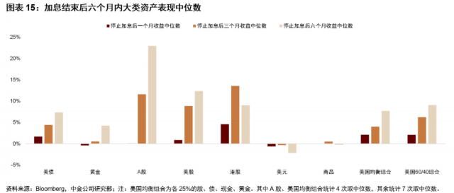 我们复盘了过去美联储结束加息后6个月的大类资产表现,发现美债、黄金和股票一般都有不错表现,美元、商品相对平淡。黄金与美债最近涨幅较多,存在回调可能性,我们建议逢低加仓。我们继续预测十年期美债利率在2023Q2降至3%左右,黄金与美债上半年继续占优。受外围市场震荡影响,中国股票短期或有波动,但往前看1个季度,随着中国增长周期上行和海外宽松预期升温,我们预期中国股票相对跑赢其他大类资产(见《大类资产3月报:中外增长联动的风险与机会》)。