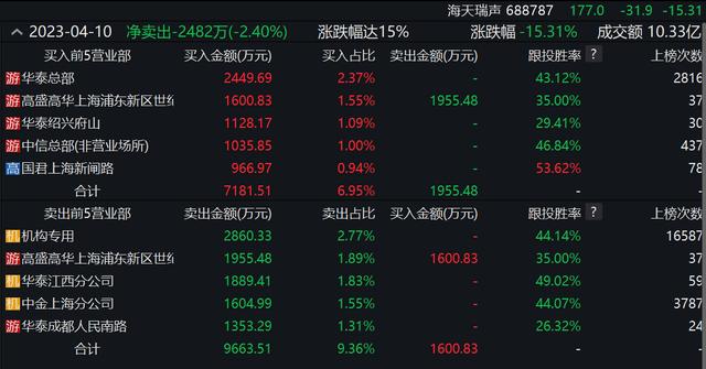 但与此同时,海天瑞声却遭到机构集体抛售,三六零也遭机构大规模卖出。海天瑞声龙虎榜的卖出前五出现了3个机构席位,分别是机构专用席位、华泰证券江西分公司和中金公司上海分公司,三机构合计净卖出6354.73万元。