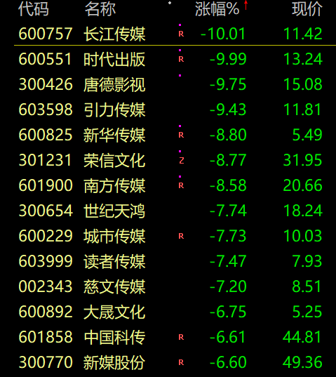 TMT板块集体下挫,传媒、游戏板块集体下挫。