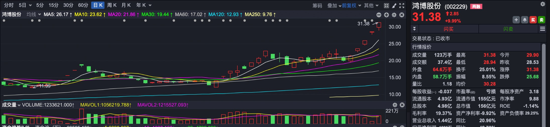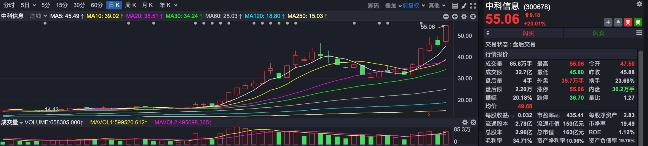 算力概念,浪潮信息涨停,鸿博股份迎来连续第四个涨停板;此外,寒武纪、科大讯飞、中科曙光等都有大幅上涨。