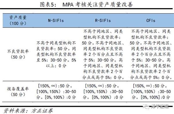 MPA简单的可理解为,央行在季末考核期借助在MPA评价体系对广义信贷类资产进行考察,通过设定一定的阈值范围评价并规范银行行为。