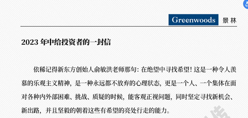 近日,记者从渠道处获悉,景林资产发布了《2023年中给投资者的一封信》。