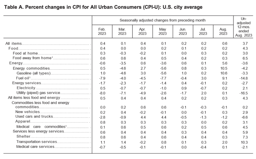 当地时间周三,美国劳工统计局公布的数据显示,美国8月CPI同比较此前的3.2%大幅回升至3.7%,市场预期为3.6%;环比上升0.6%,较7月的0.2%提升了0.4个百分点。