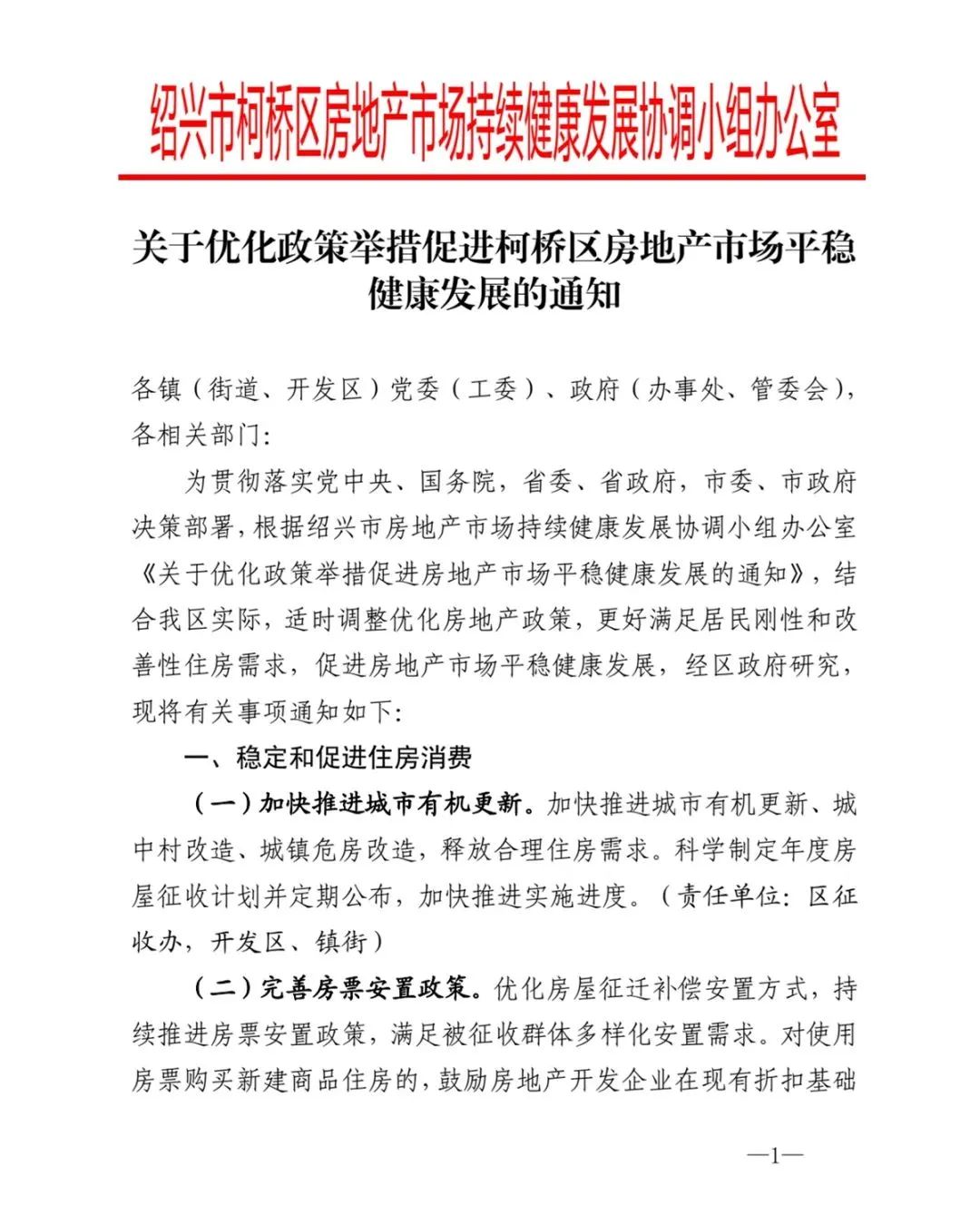 绍兴柯桥区:全面放开住房限售 鼓励开发商对房票买新房的再让利