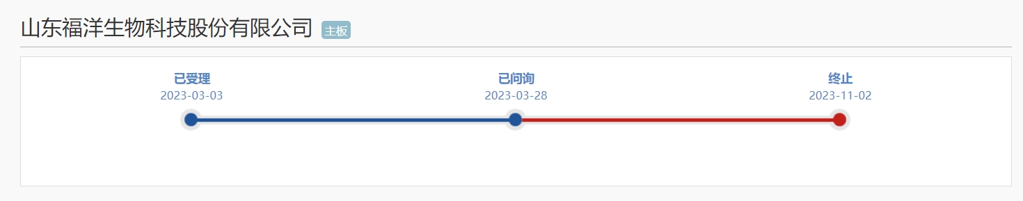 澎湃新闻注意到,福洋生物曾于2018年启动过上市辅导,后因发展规划调整而终止。2022年7月8日,福洋生物提交招股书,拟在上交所主板上市;今年年初全面注册制落地后,项目平移于3月3日获上交所受理;3月28日上交所发出问询函;7月25日,福洋生物与保荐机构对问询进行了回复;随后于11月2日撤回IPO申请。