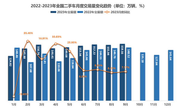 1-9月二手车交易增速达12.61%