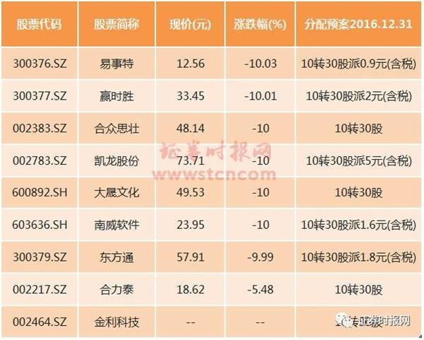 今日股价大跌的某创业板上市公司就是一个很好的例子。公司2016年高送转方案为:向全体股东每10股转增30股,派发现金红利2元(含税).