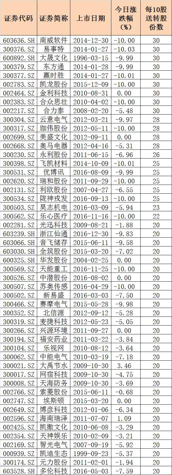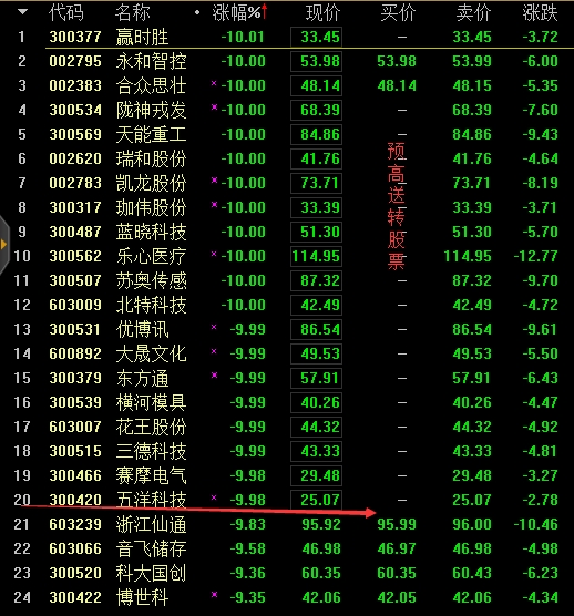 在刘士余喊话后,昨日开盘高送转概念就大跌,到收盘更是大面积跌停,尤其高送转较多集中在次新股中,加剧了近期本已跌跌不休的次新股崩盘。